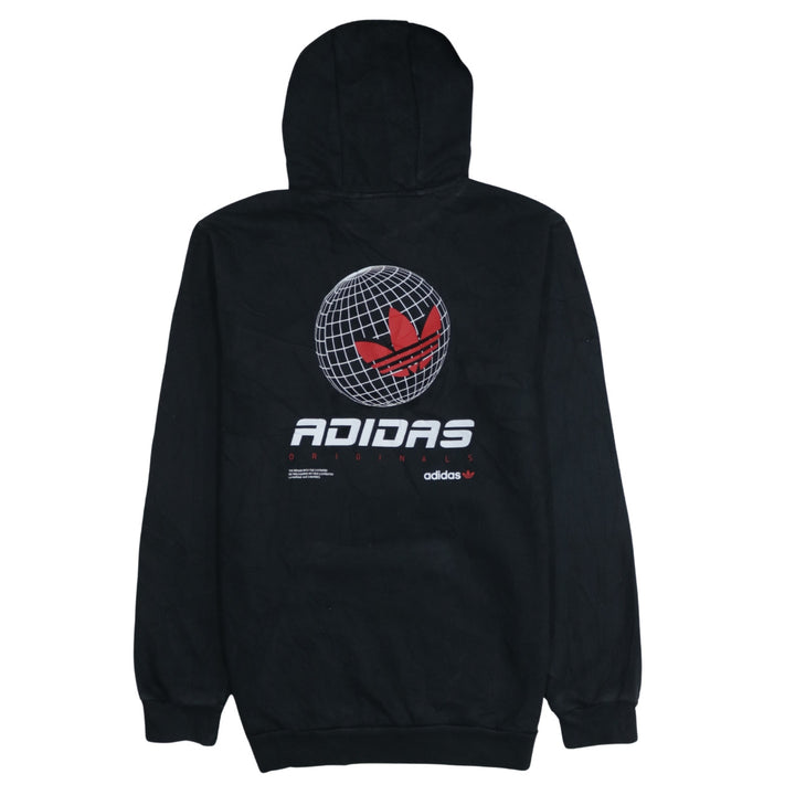 Adidas 90s Black Drawstring Pullover Hoodie Medium with Pockets