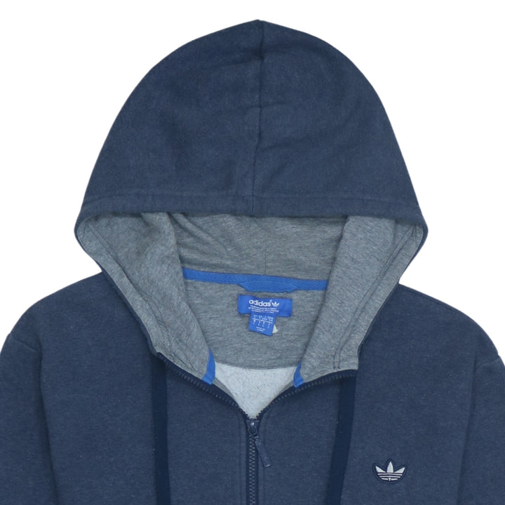 Adidas 90's Drawstring Pockets Full Zip Up Hoodie Large Navy Blue