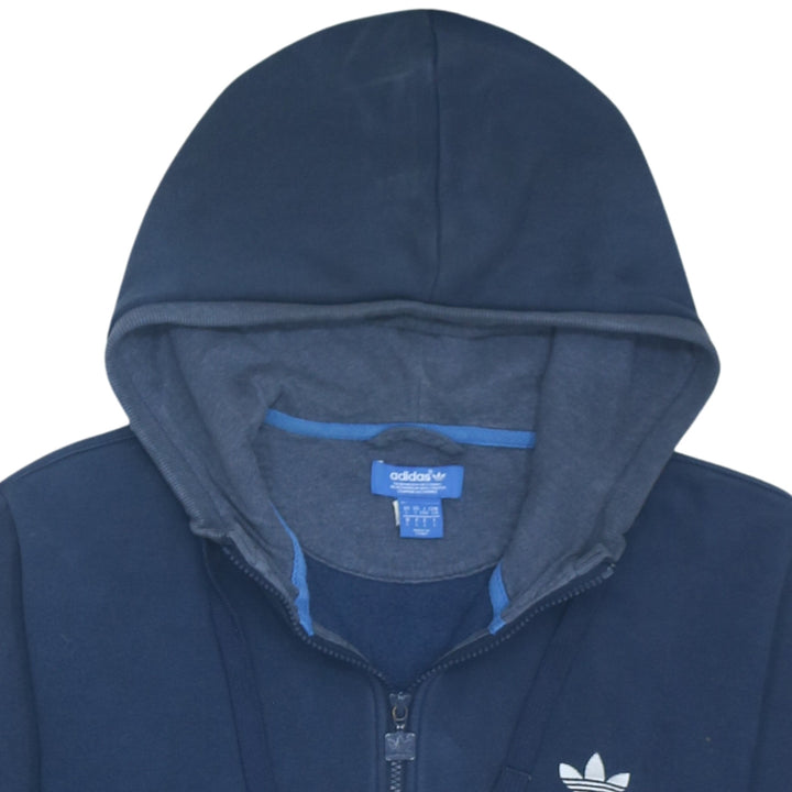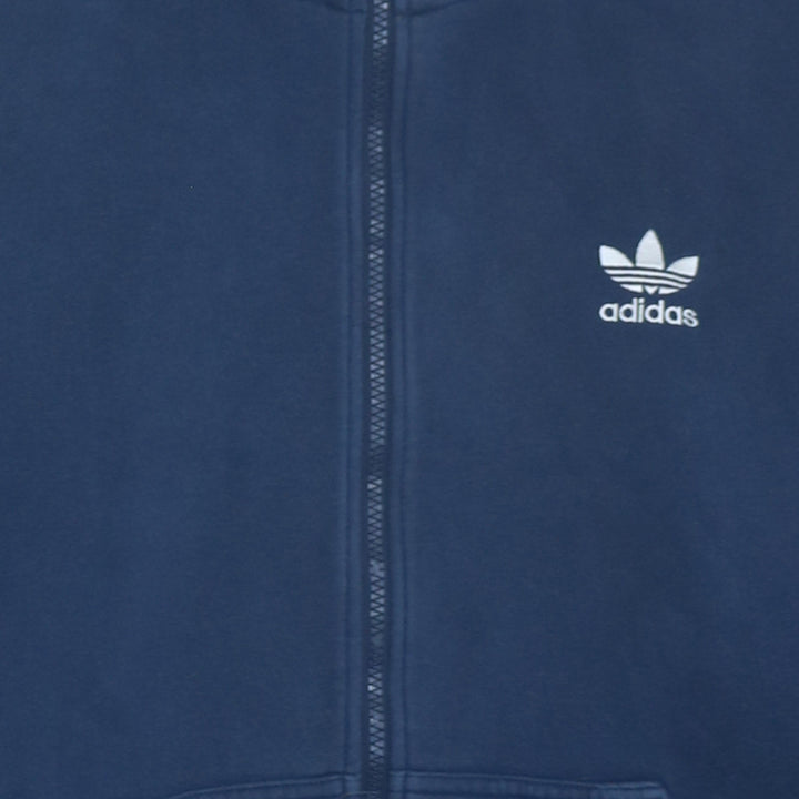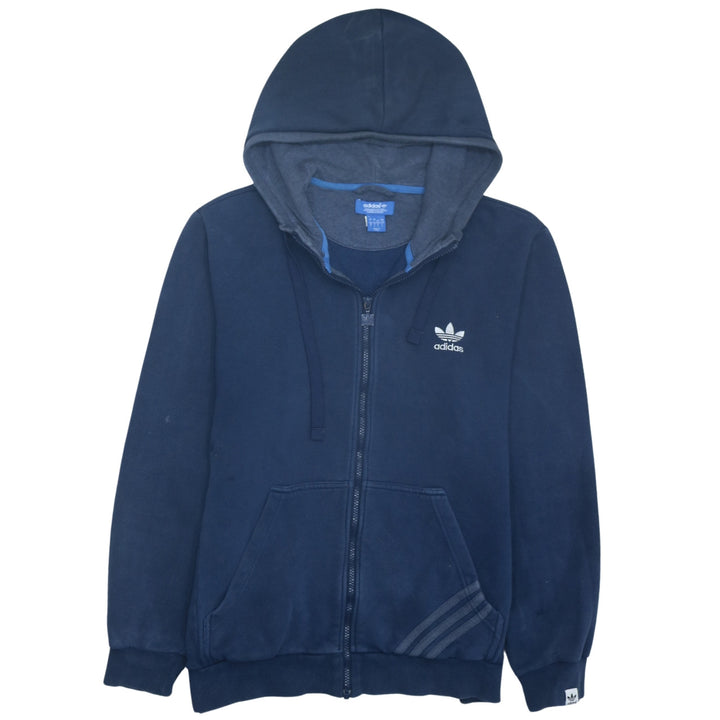 Adidas 90's Drawstring Pockets Full Zip Up Hoodie Large Navy Blue