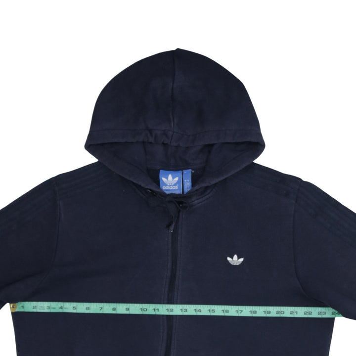 Adidas 90's Drawstring Pockets Full Zip Up Hoodie Large Navy Blue