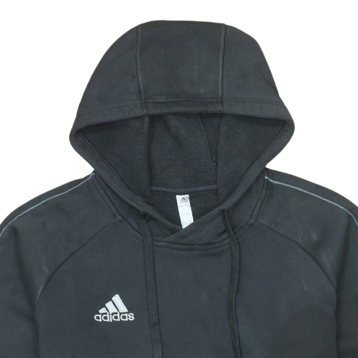 Adidas 90's Vintage Black Pullover Hoodie Large with Drawstring Pockets