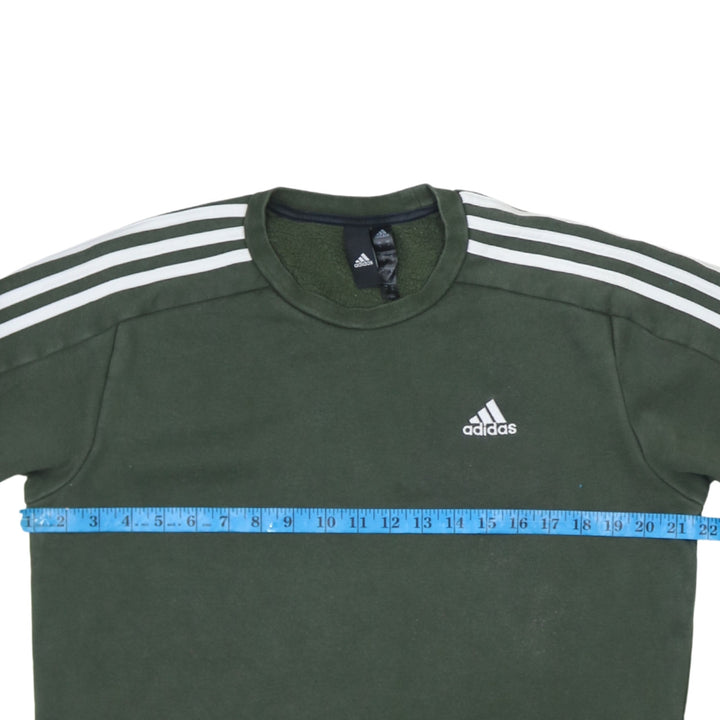 Adidas 90's Green Striped Sleeve Crew Neck Sweatshirt Men's Small