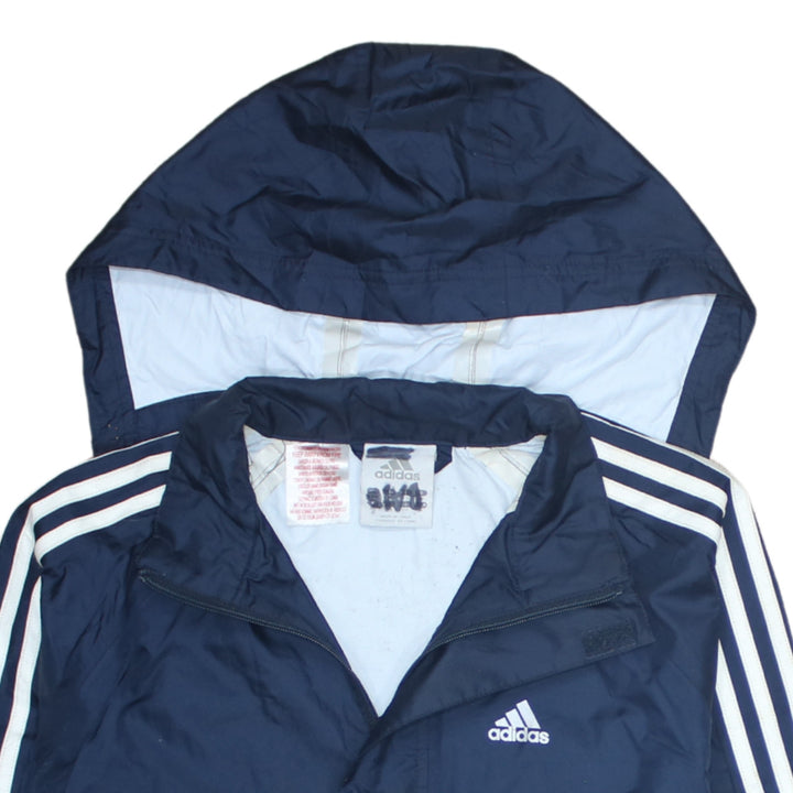 Adidas 90's Hooded Full Zip Up Windbreaker Small Navy Blue