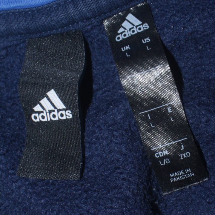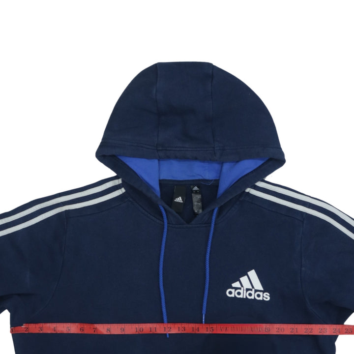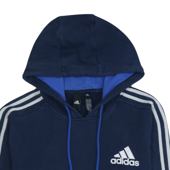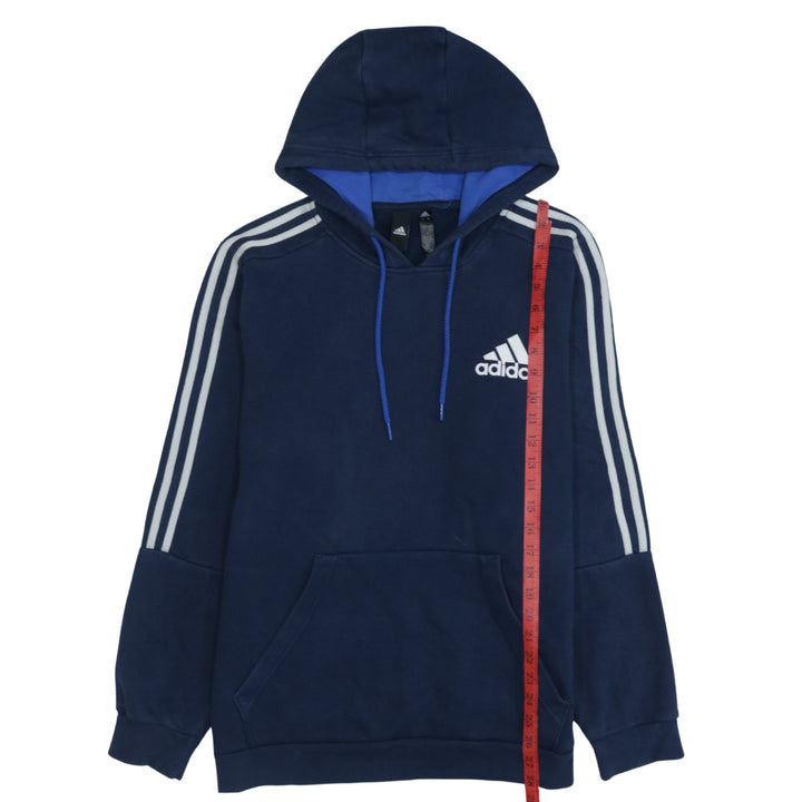 Adidas 90's Navy Blue Striped Sleeve Pullover Hoodie Large Size