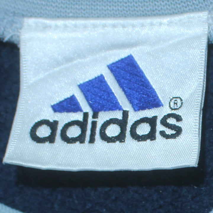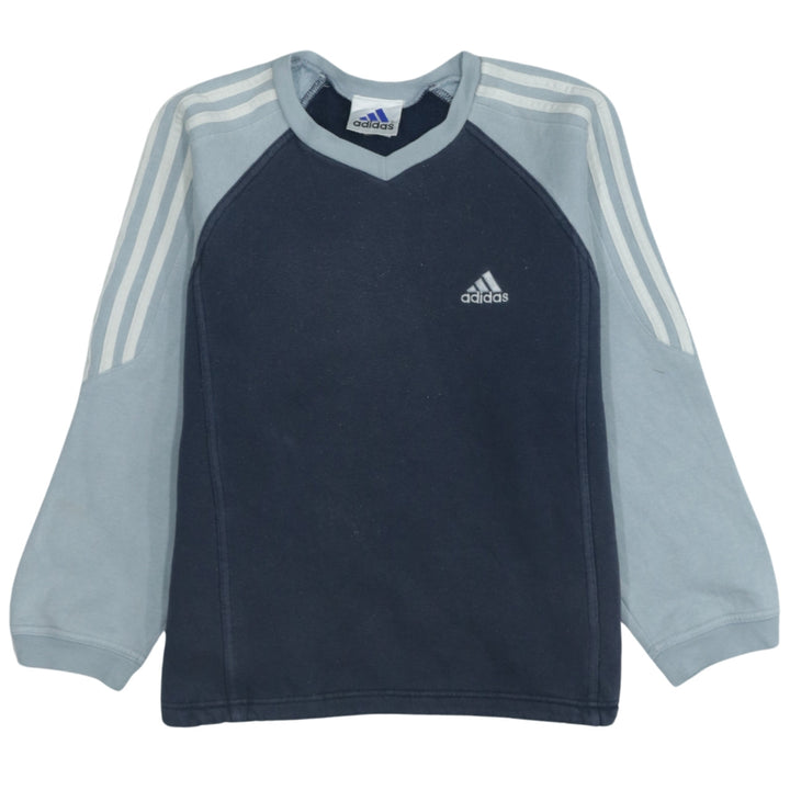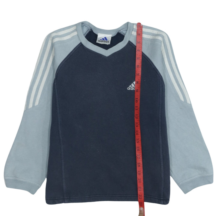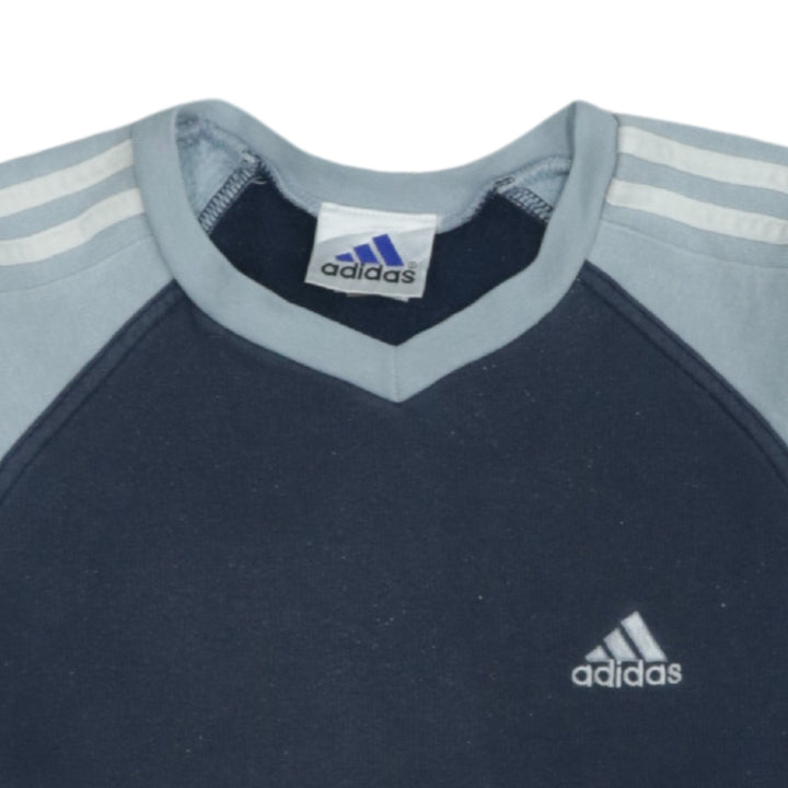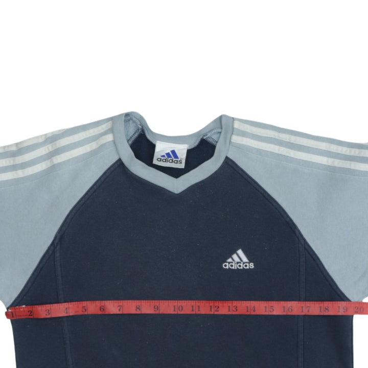 Adidas 90's Navy Blue Striped Sleeve V Neck Sweatshirt Small