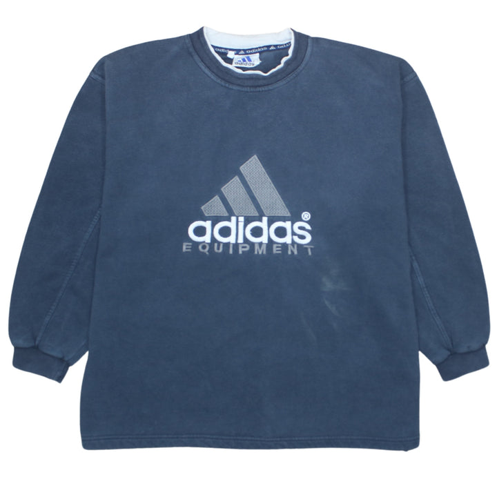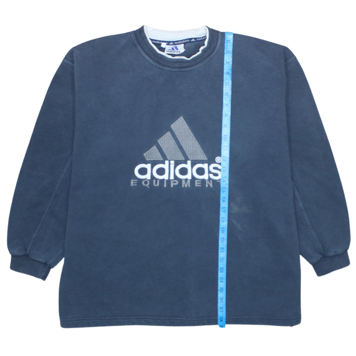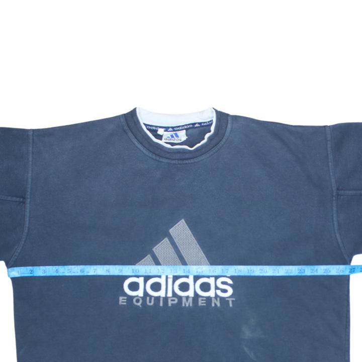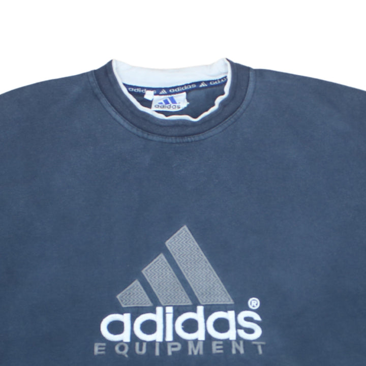 Adidas 90's Navy Blue Spellout Crew Neck Sweatshirt XLarge Cotton