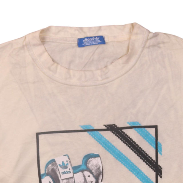 Adidas 90's Beige Cream Spellout T Shirt Men's Small Vintage Retro