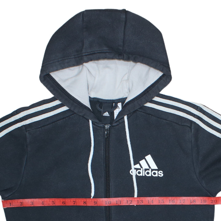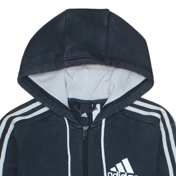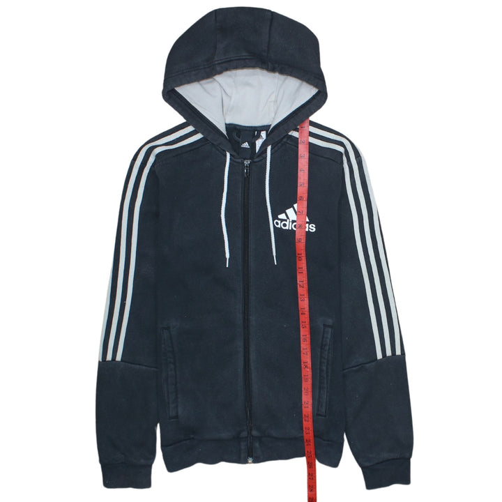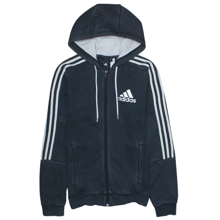 Adidas 90's Striped Sleeve Black Full Zip Up Hoodie Small