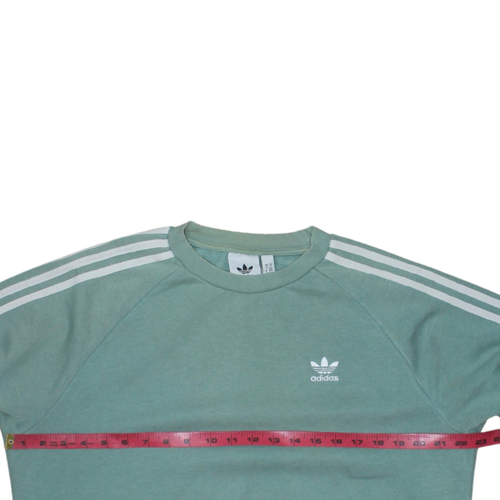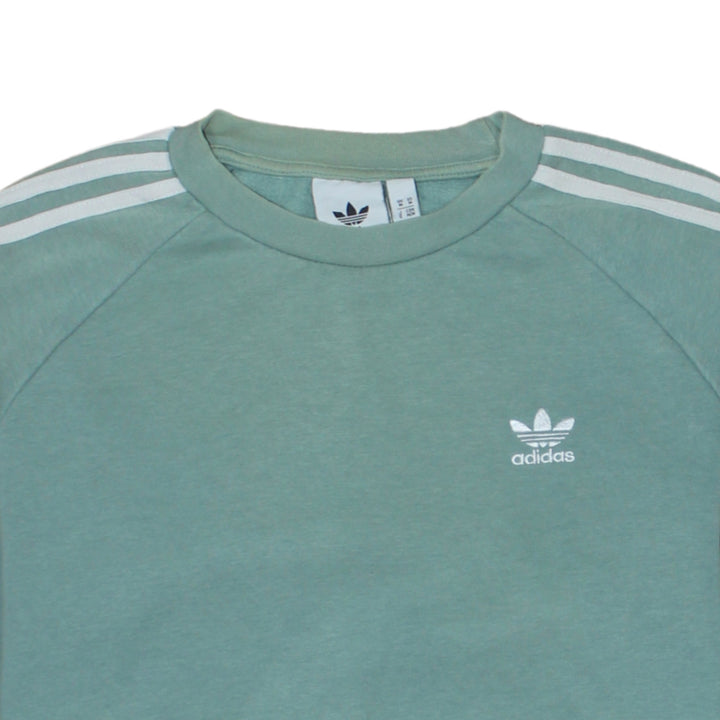 Adidas 90's Striped Sleeve Crew Neck Sweatshirt Medium Green