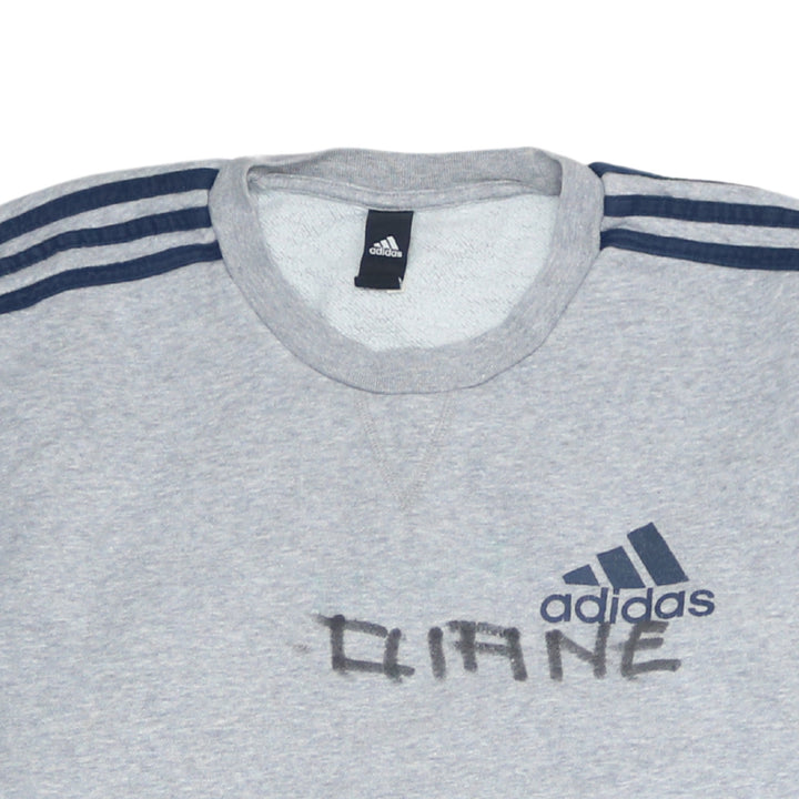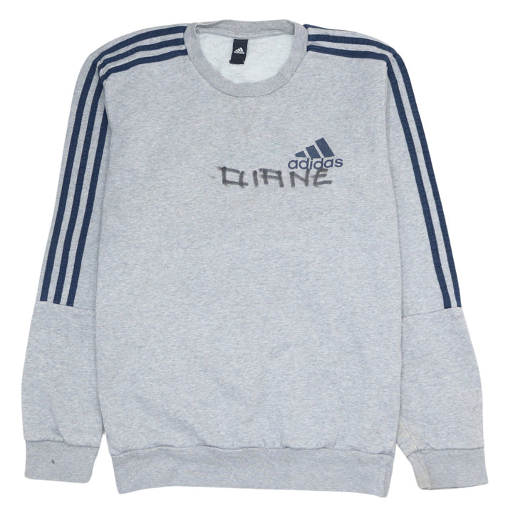 Adidas 90's Striped Sleeve Crew Neck Sweatshirt Medium Grey