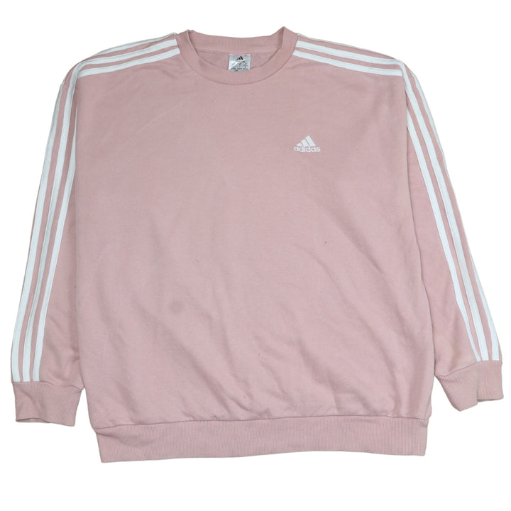Adidas Women's 90's Pink Crew Neck Sweatshirt Medium Striped Sleeves