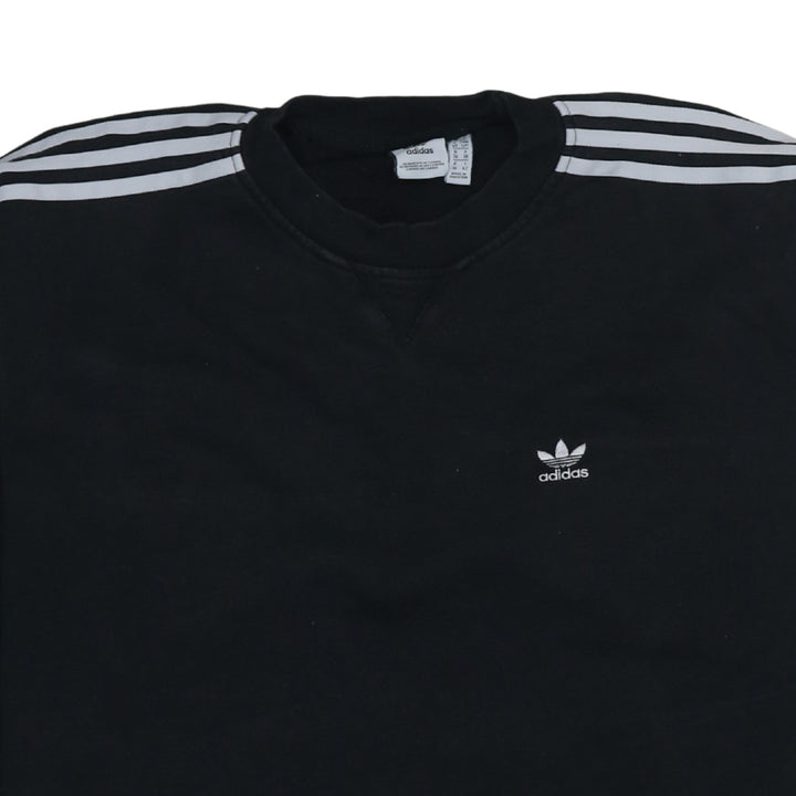 Adidas 90's Striped Sleeve Crew Neck Sweatshirt Small Black