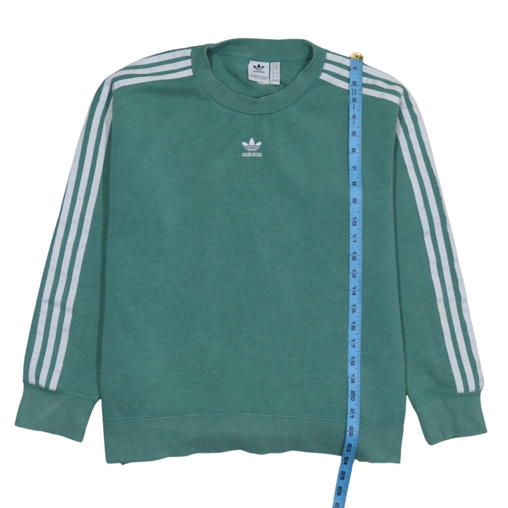 Adidas 90's Striped Sleeve Crew Neck Sweatshirt Small Green