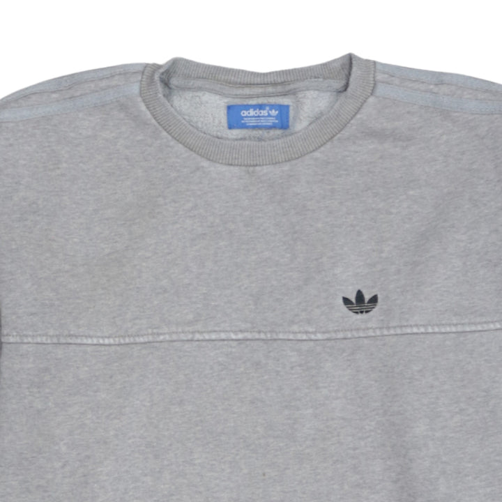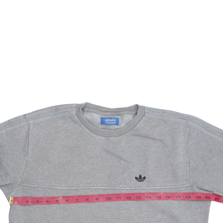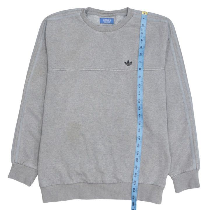 Adidas 90's Striped Sleeve Crew Neck Sweatshirt Small Grey