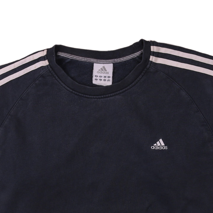 Adidas Vintage 90's Navy Blue Striped Sleeve Crew Neck Sweatshirt XLarge