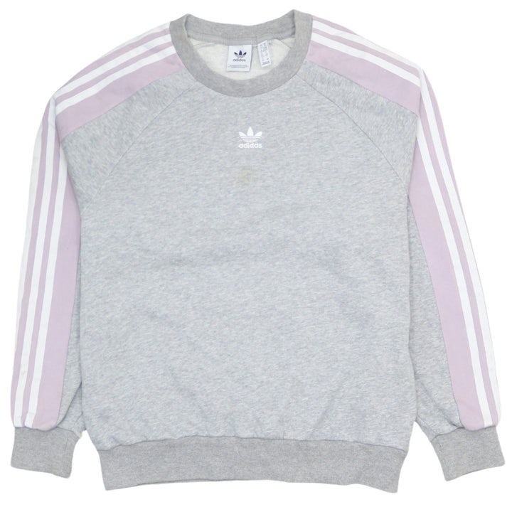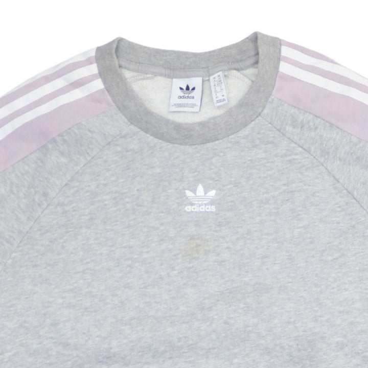 Adidas Women's 90's Vintage Grey Striped Sleeve Sweatshirt XSmall