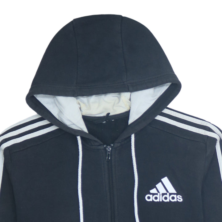 Adidas 90's Striped Sleeve Full Zip Up Hoodie Large Black