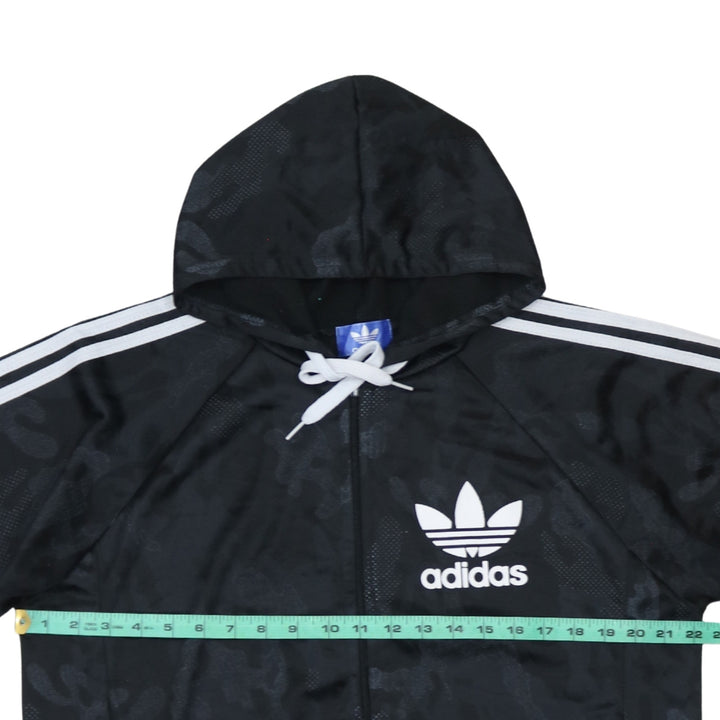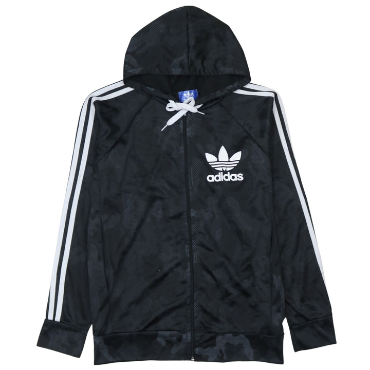 Adidas 90's Striped Sleeve Full Zip Up Hoodie Large Black