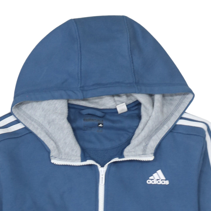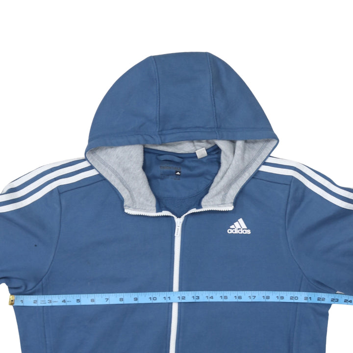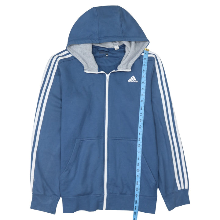 Adidas 90's Striped Sleeve Full Zip Up Hoodie Large Blue