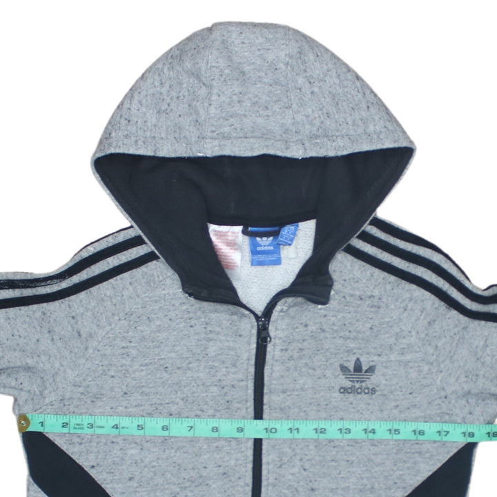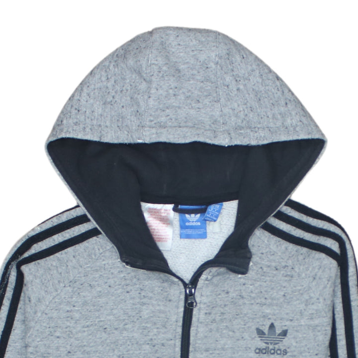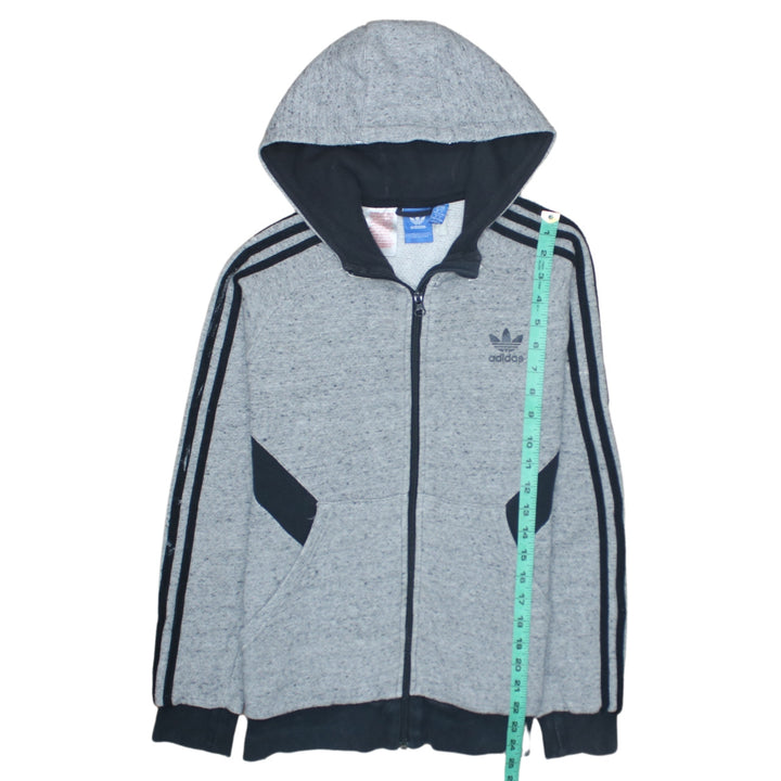 Adidas 90's Striped Sleeve Full Zip Up Hoodie Large Grey