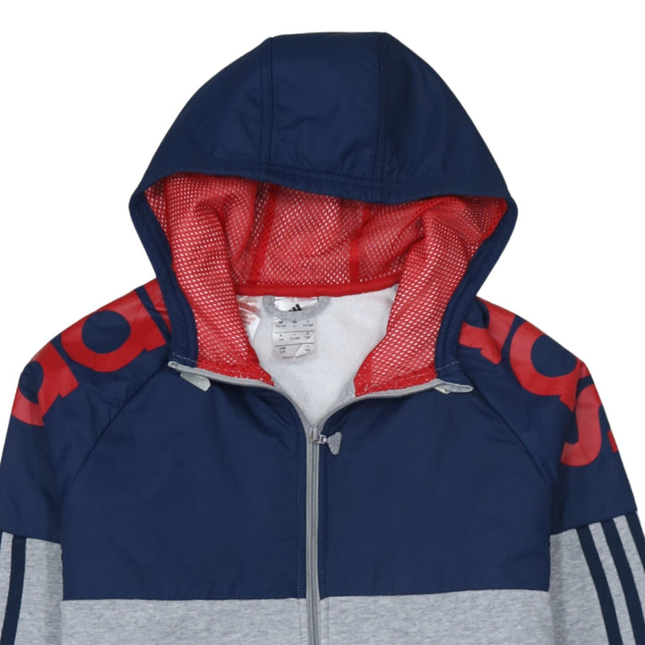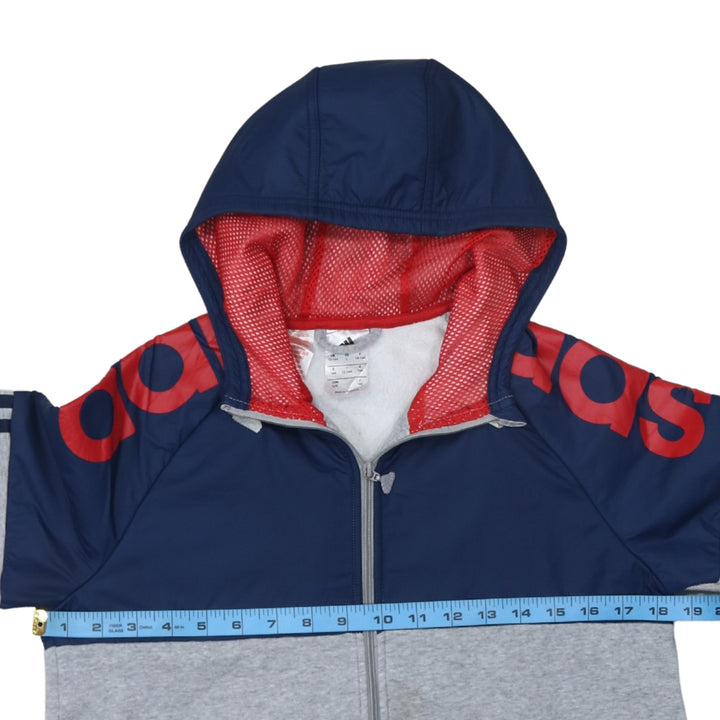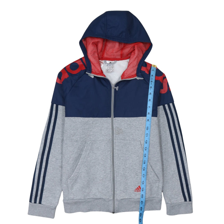 Adidas 90's Striped Sleeve Full Zip Up Hoodie Large Grey