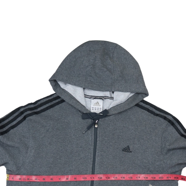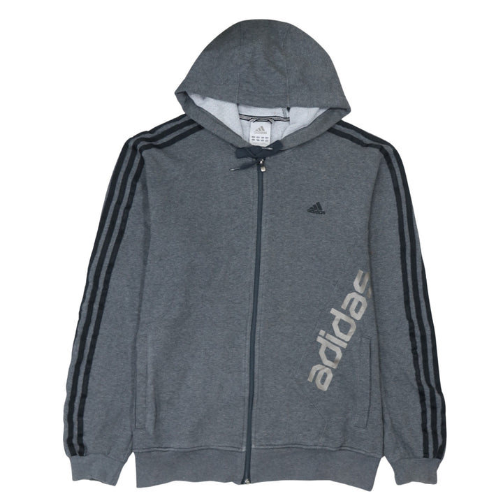 Adidas 90's Striped Sleeve Full Zip Up Hoodie Large Grey