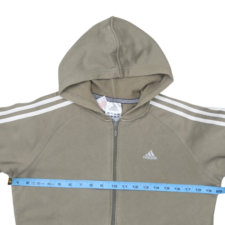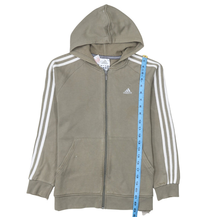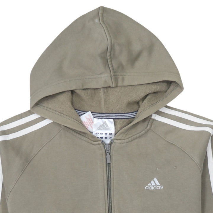 Adidas 90's Striped Sleeve Full Zip Up Hoodie Large Khaki Green