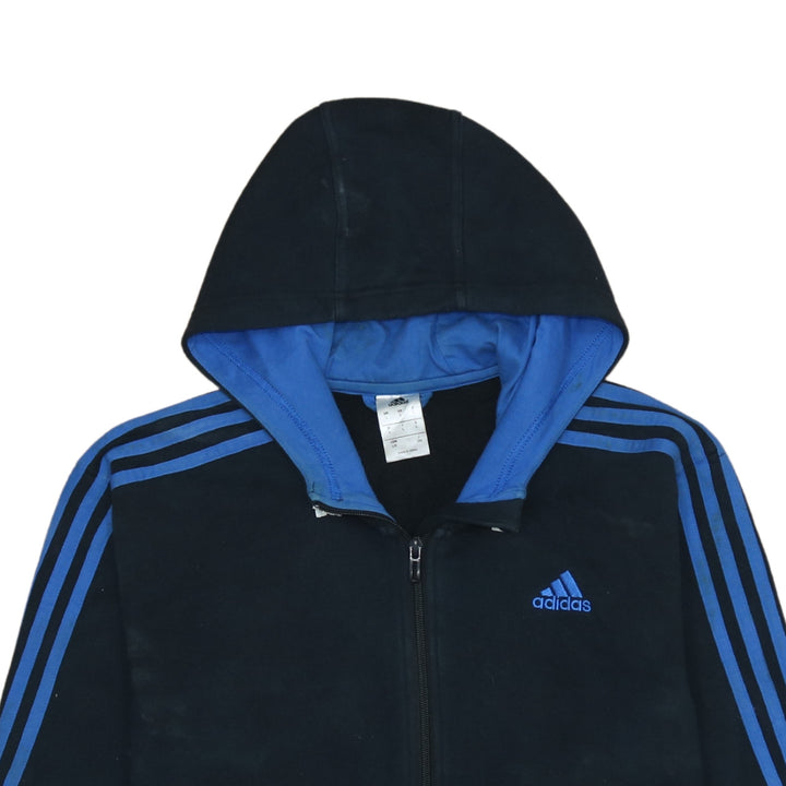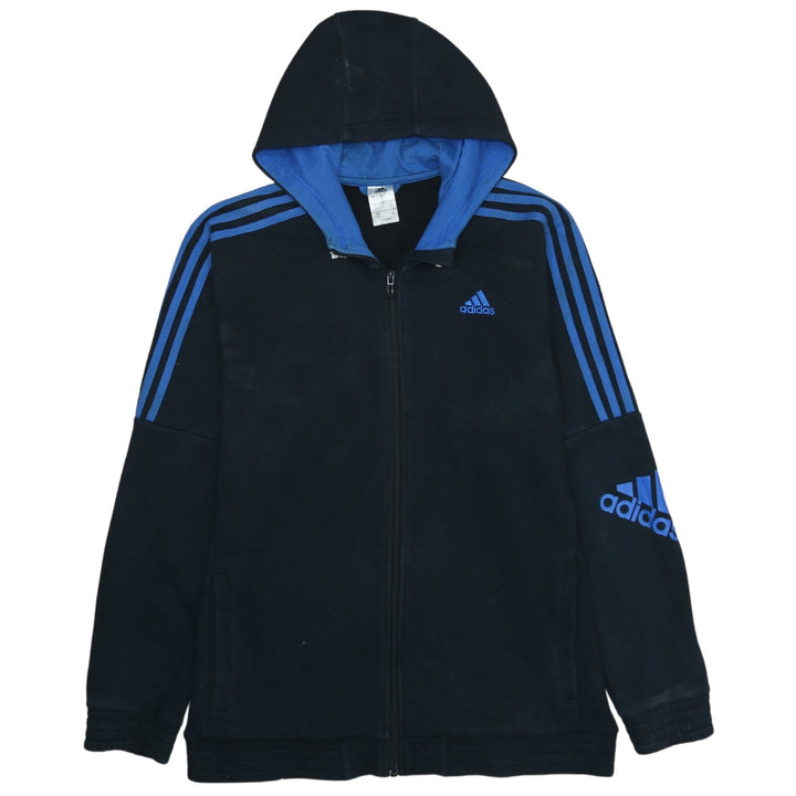 Adidas 90's Striped Sleeve Full Zip Up Hoodie Large Navy Blue