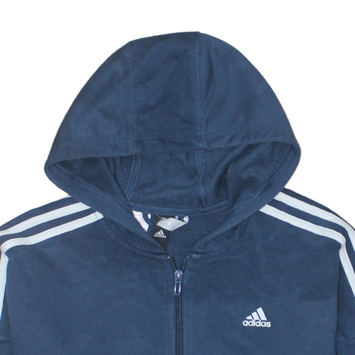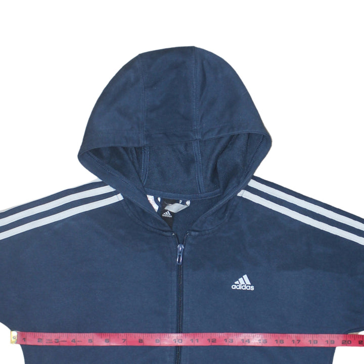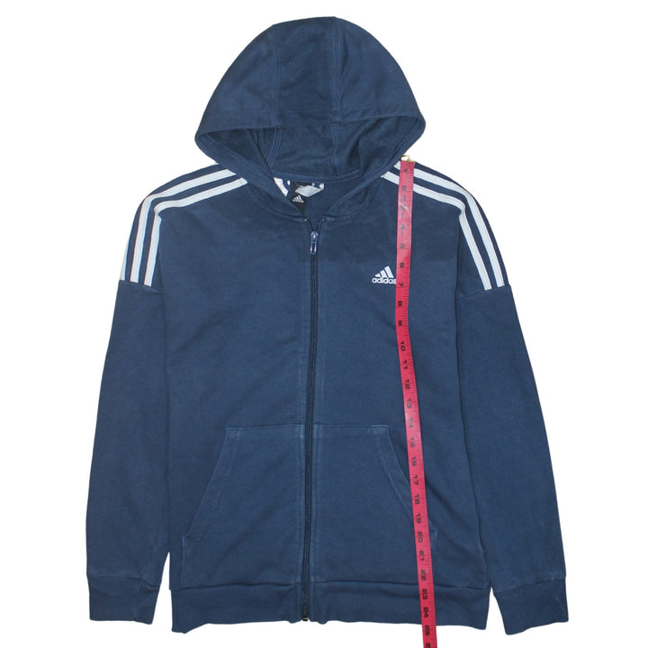 Adidas 90's Striped Sleeve Full Zip Up Hoodie Large Navy Blue