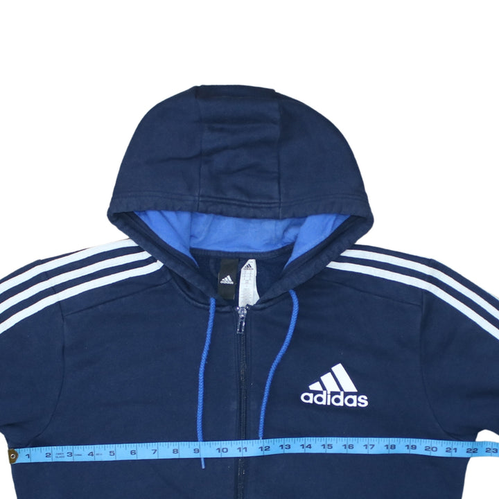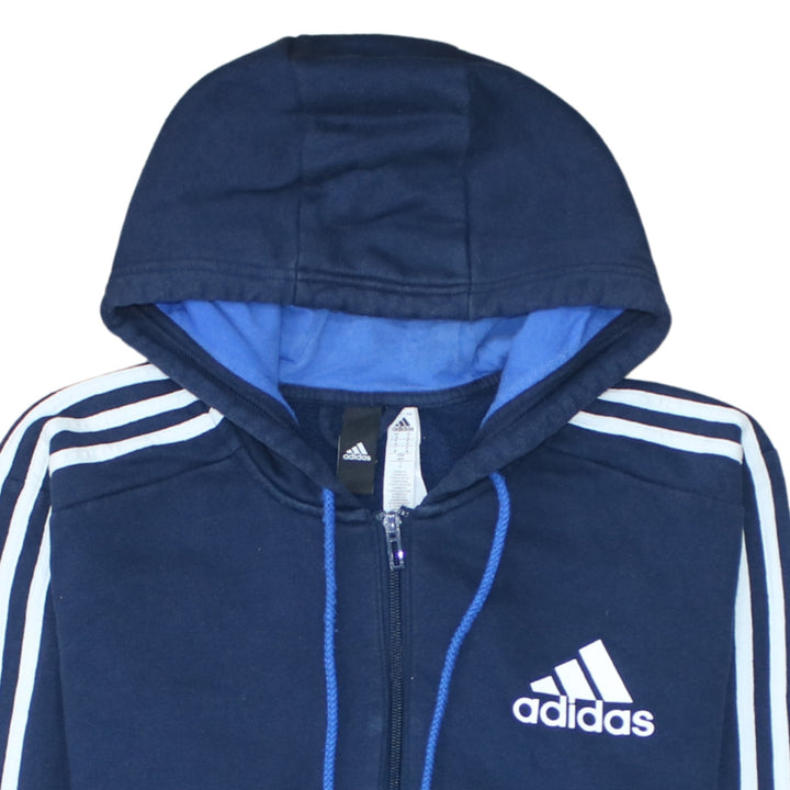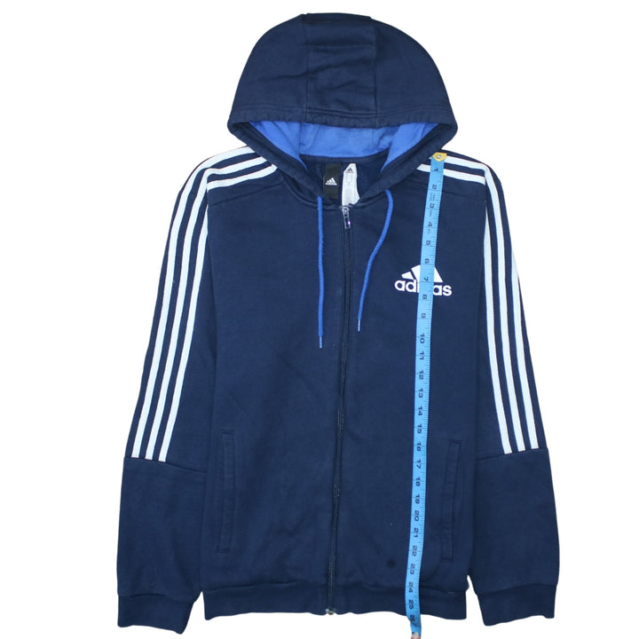 Adidas 90's Striped Sleeve Full Zip Up Hoodie Medium Navy Blue