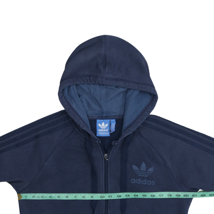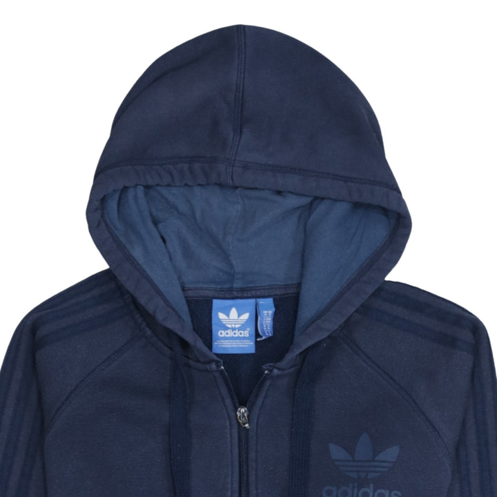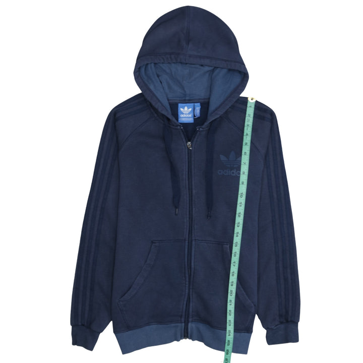 Adidas 90's Striped Sleeve Full Zip Up Hoodie Medium Navy Blue