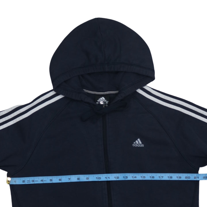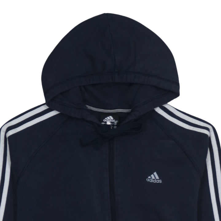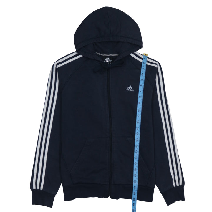Adidas 90's Striped Sleeve Full Zip Up Hoodie Medium Navy Blue
