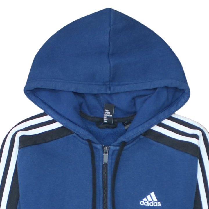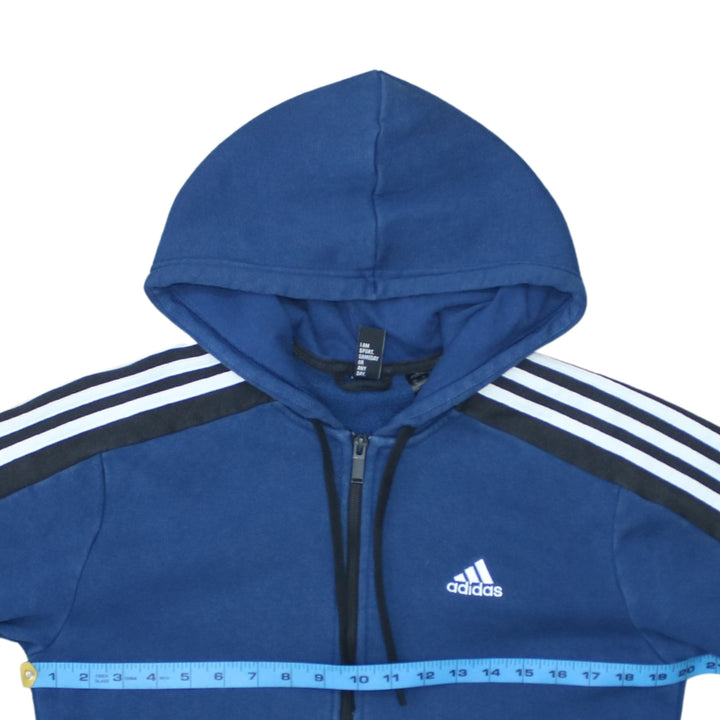 Adidas 90's Striped Sleeve Full Zip Up Hoodie Small Navy Blue