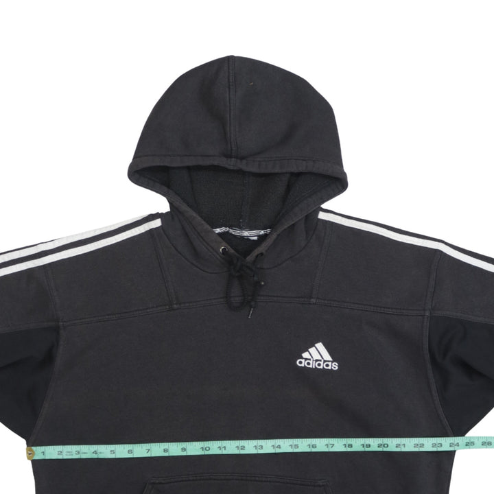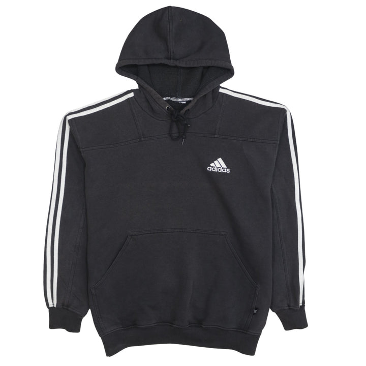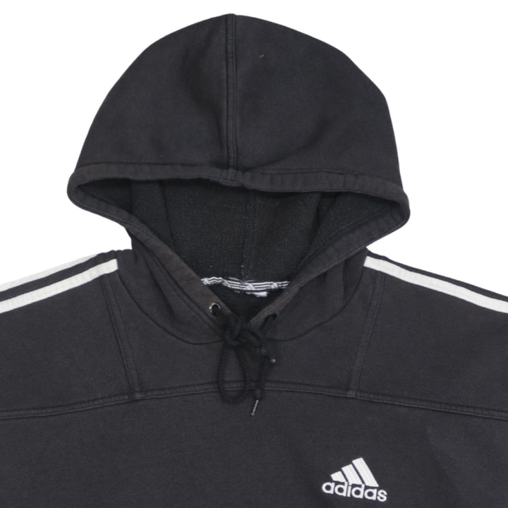 Adidas 90's Striped Sleeve Pullover Hoodie Large Black