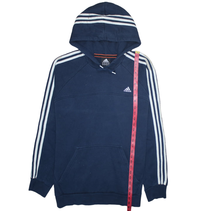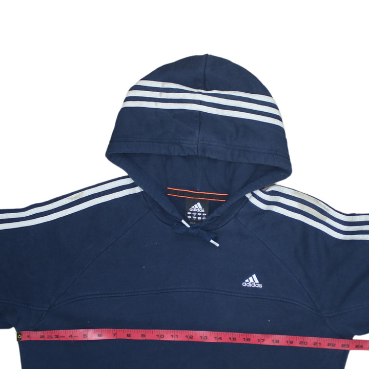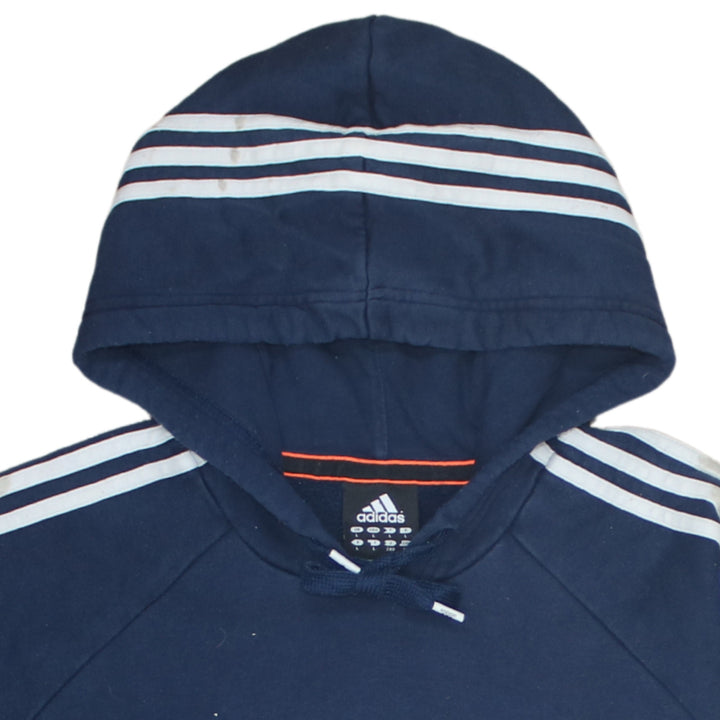 Adidas 90's Striped Sleeve Pullover Hoodie Large Navy Blue