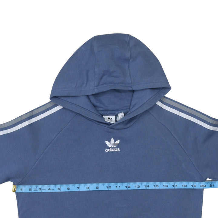 Adidas 90's Striped Sleeve Pullover Hoodie Large Navy Blue