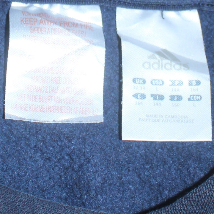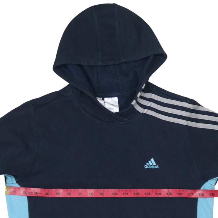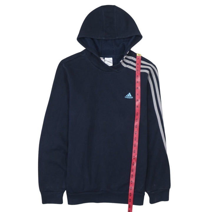Adidas 90's Striped Sleeve Pullover Hoodie Large Navy Blue