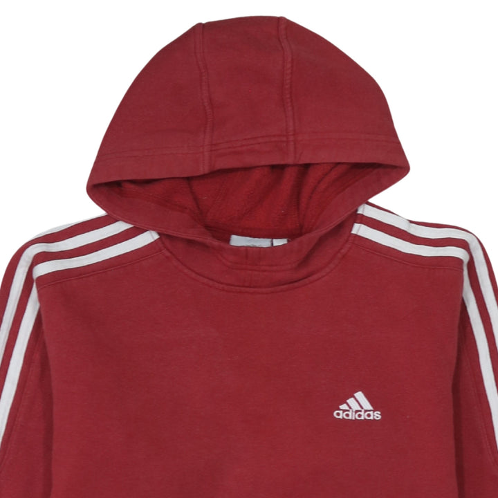 Adidas 90's Striped Sleeve Pullover Hoodie Large Red