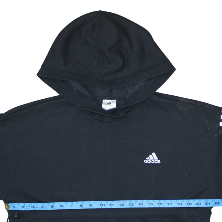 Adidas 90's Striped Sleeve Pullover Hoodie Medium Black