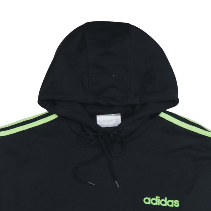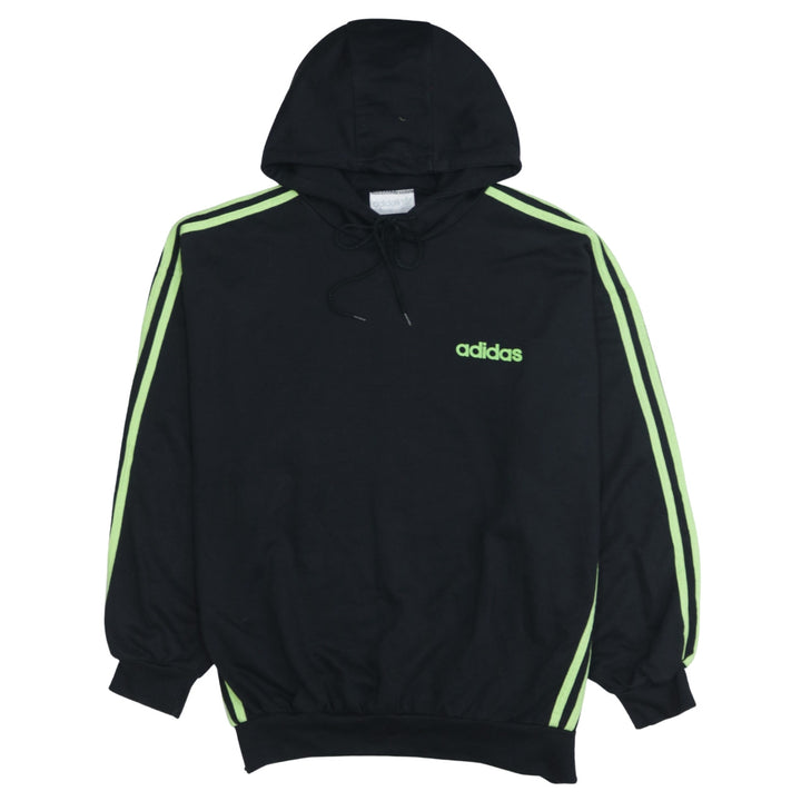 Adidas 90's Striped Sleeve Pullover Hoodie Small Black