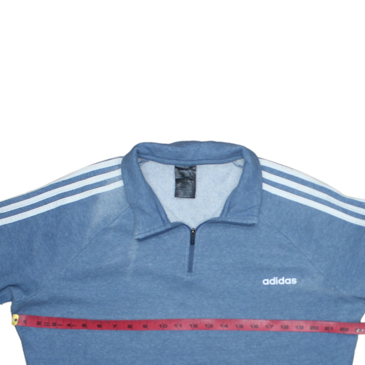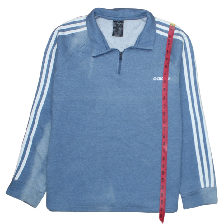 Adidas 90's Striped Sleeve Quarter Zip Sweatshirt XLarge Blue
