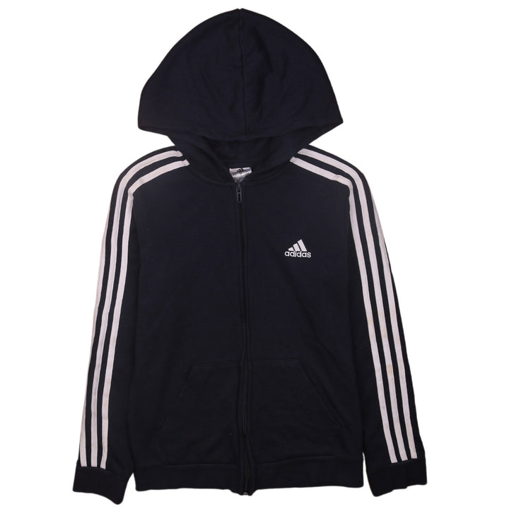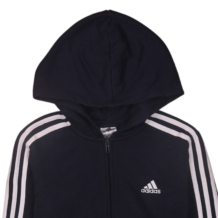 Adidas Vintage 90s Navy Blue Striped Sleeves Full Zip Hoodie Small
