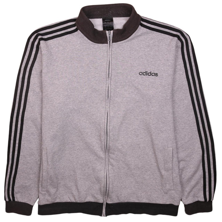 Adidas Vintage 90's Grey Striped Sleeve XL Zip Up Sweatshirt
