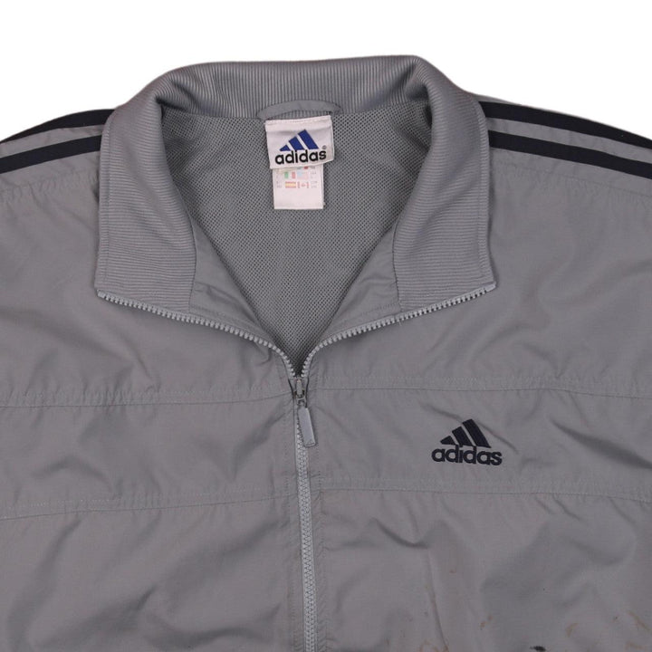 Adidas 90's Men's Large Grey Striped Full Zip Windbreaker Jacket
