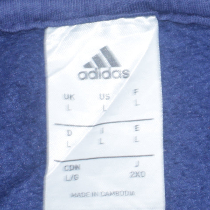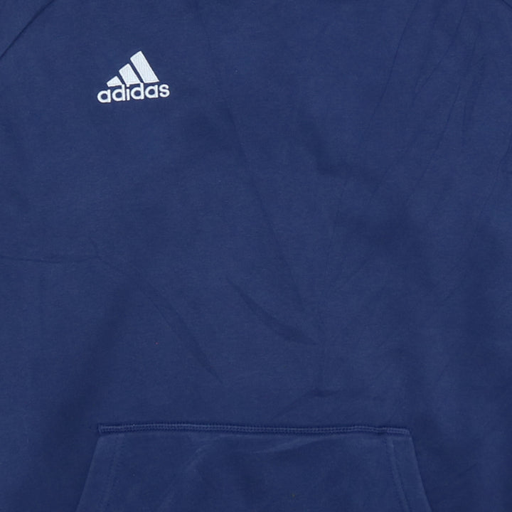 Adidas Vintage 90's Pullover Hoodie Large Navy Blue with Drawstring & Pockets
