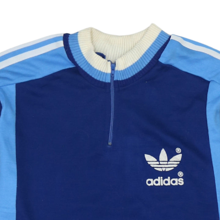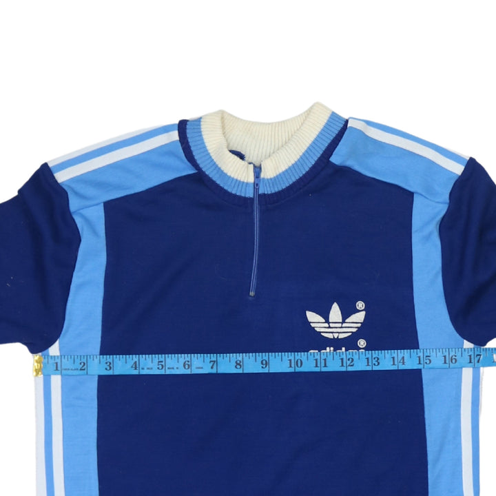Adidas 90s Vintage Men's Small Blue Cotton Quarter Zip T-Shirt