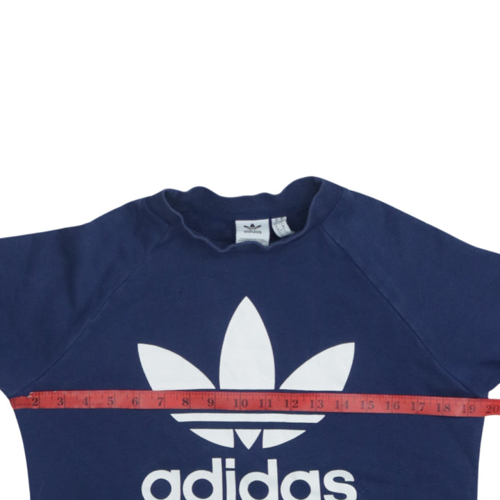 Adidas Vintage 90's Spellout Crew Neck Sweater Small Navy Blue