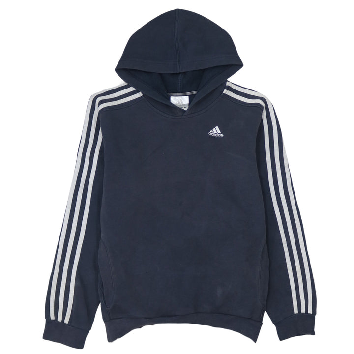 Adidas Vintage 90's Navy Striped Sleeve Pullover Hoodie Medium Unisex