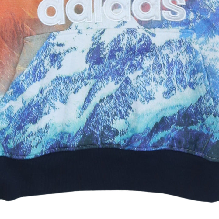 Adidas 90's Vintage Blue Spellout Pullover Hoodie Small Cotton