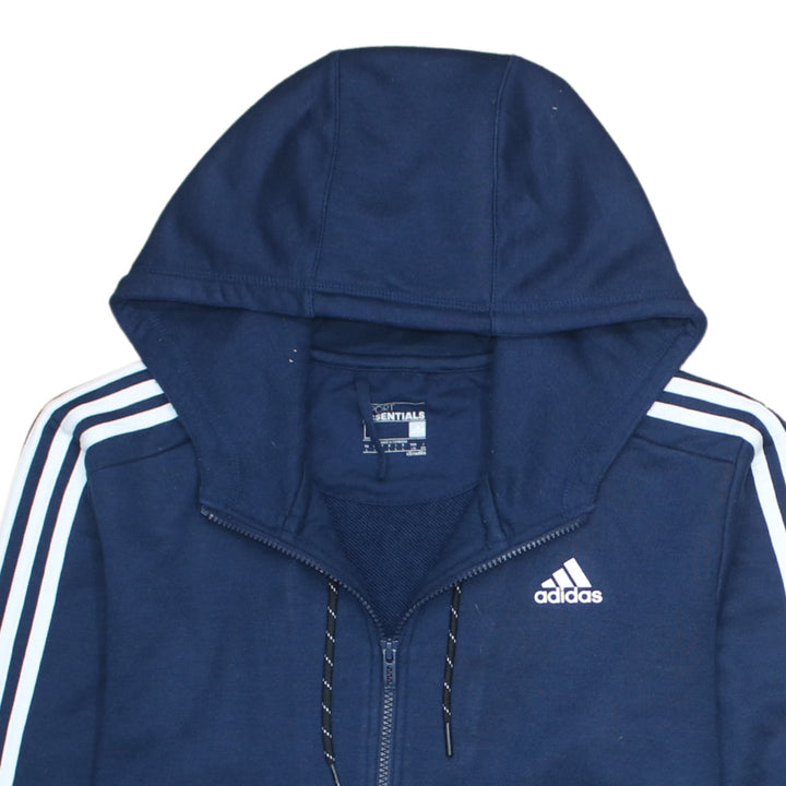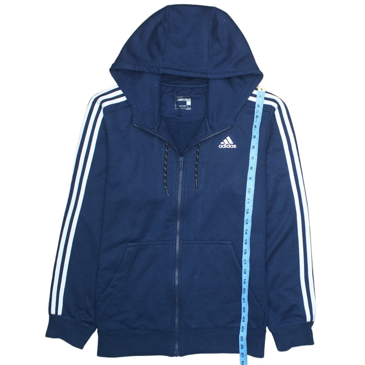 Adidas 90's Vintage Striped Sleeve Full Zip Hoodie Large Navy Blue